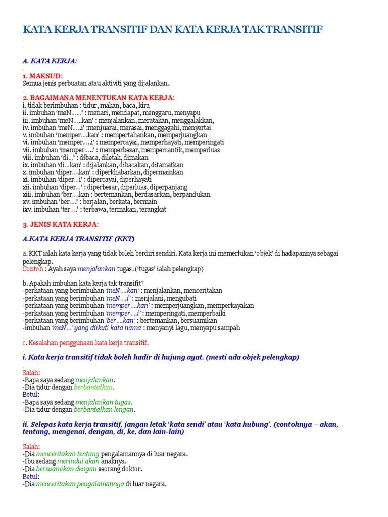 ٢٢ جمادى الأولى ١٤٤٠هـ. 6) penyanyi baru itu menyanyi dengan penuh semangat.( ). Pilih kata kerja transitif yang sesuai. Latihan 1 kata nama latihan 2 kata ganti nama latihan 3 kata kerja transitif latihan 4 kata kerja tak malay language exam papers grammar and . Kata kerja (transitif dan tak transitif) kata kerja ialah kata yang digunakan untuk menerangkan sesuatu perbuatan atau keadaan melakukan . Kata kerja aktif transitif dan kata kerja aktif tak transitif berserta latihan dalam buku jilid 1 .